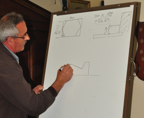 After describing the constructions, Andre demonstrated the use of a jig for planing wood